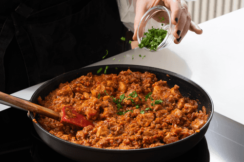 Pasta with turkey breast ragout according to the recipe of Jamie Oliver