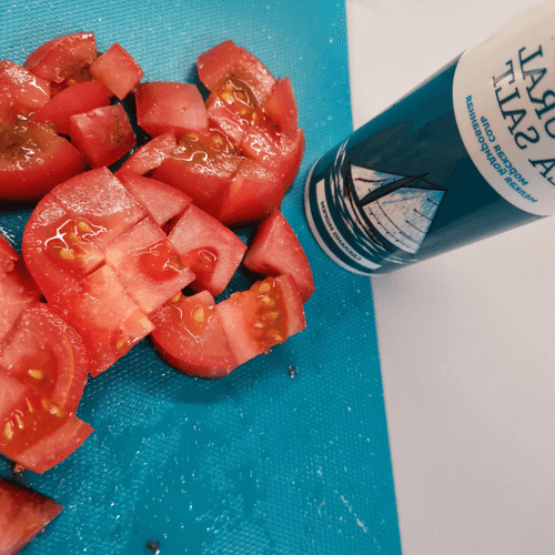 Cut the tomatoes into cubes and salt them.