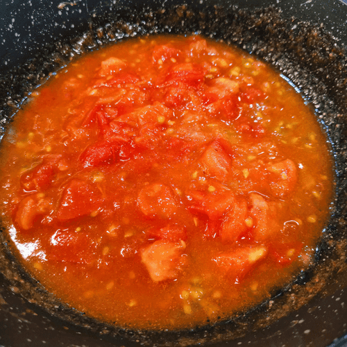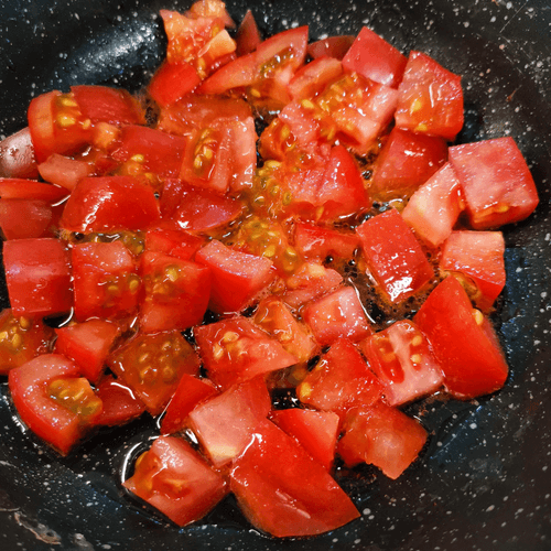 Add the sautéed tomato. Stir and serve in portions.