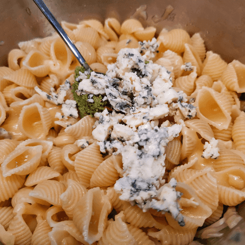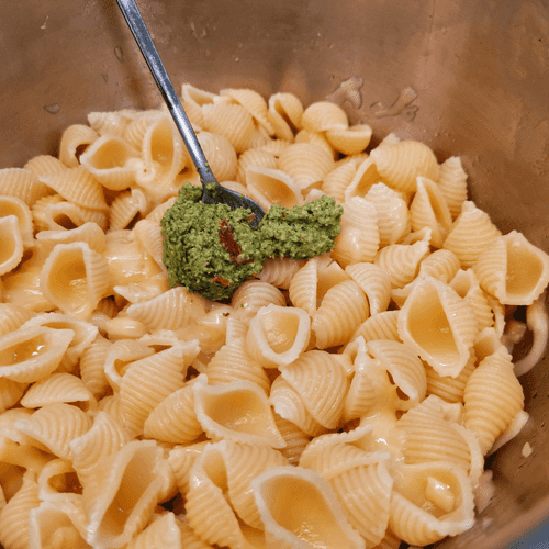 Conchiglie with pesto sauce and gorgonzola