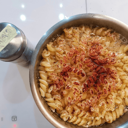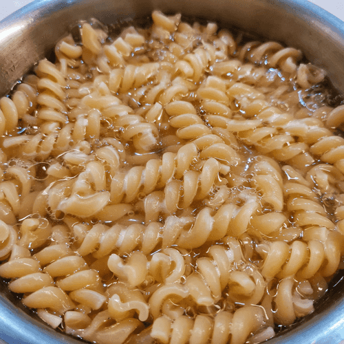 Once the water boils, add the pasta, reduce the heat, and cook according to the package instructions.