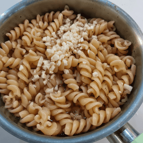 Add garlic and stir one minute before readiness.