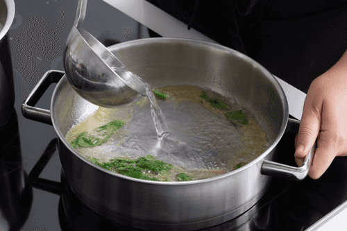 Add the second part of the oil to the pan, melt it, but do not let it boil or bubble.