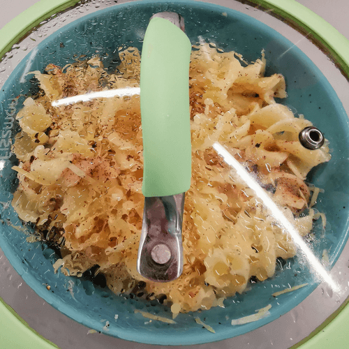 Drain the water and mix.