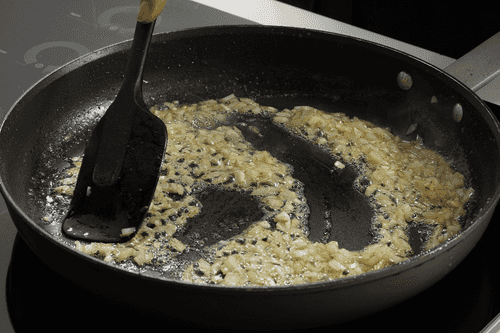 Fry them in olive oil until a bright aroma and golden color appear.