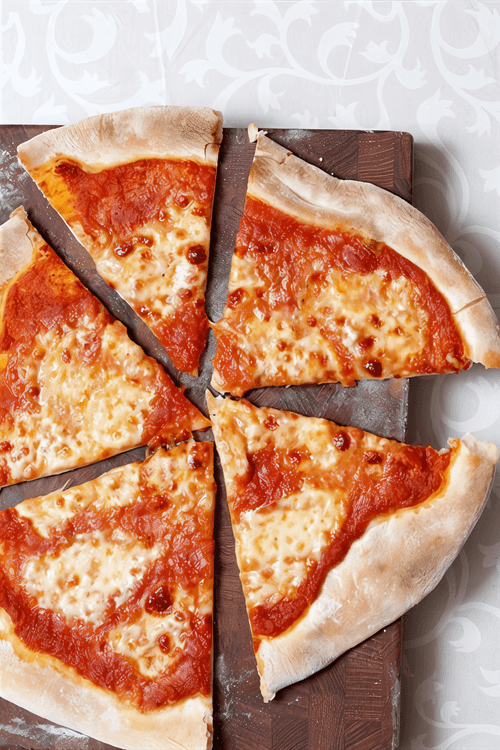 Pizza Margherita with two cheeses is a true embodiment of Italian gastronomy, combining simplicity and exquisite taste. This classic recipe dates back to 1889 when chef Raffaele Esposito made a pizza in honor of Queen Margherita of Savoy, decorating it with the colors of the Italian flag: red tomato sauce, white mozzarella, and green basil. The version with parmesan adds richness to the flavor, turning the thin crust into a base for a harmonious blend of cheeses. The crispy crust, rich tomato sauce infused with garlic and basil aroma, tender mozzarella, and tangy parmesan make this pizza an ideal choice for family dinners or cozy evenings with friends. It is baked to a golden crust and served hot, revealing the full palette of Italian cuisine flavors.