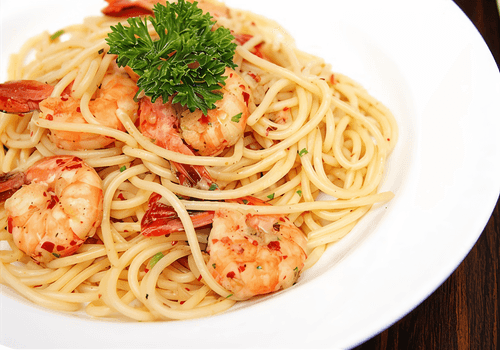 Boil the spaghetti, drain it, and rinse with cold water. Once the water drains, add the spaghetti to the cooked shrimp, mix everything, and simmer on low heat for 10 minutes. The dish is ready.