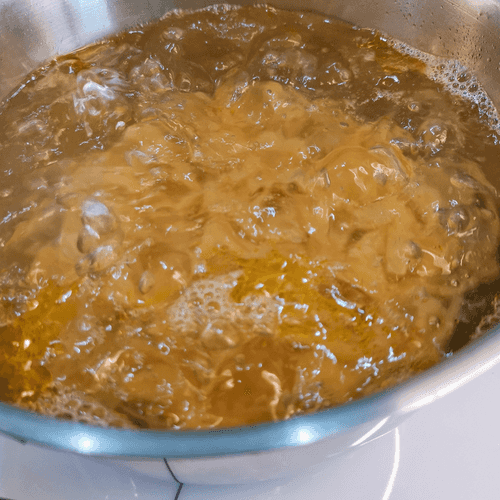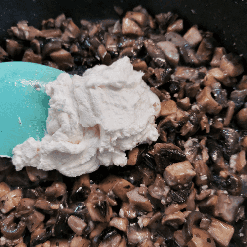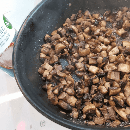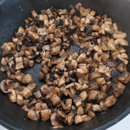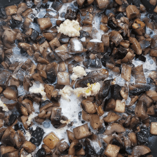 After 2 minutes, reduce the heat and add the pressed garlic.