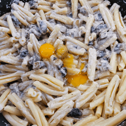 Pasta cavatappi with mushrooms is an exquisite dish of Italian cuisine, infused with the spirit of cozy Tuscan restaurants. Cavatappi, with its slightly twisted edges, perfectly absorbs the rich creamy sauce. Mushrooms, tender and aromatic, add depth to the pasta's flavor, while ricotta and mozzarella provide a velvety texture. A mix of peppers and garlic brings a light spiciness, and quail yolks make the dish especially delicate. This pasta is an excellent choice for a romantic dinner or a cozy family gathering; it captivates with its harmonious blend of flavors and simplicity in preparation. It’s best served immediately to enjoy its perfect creamy consistency.