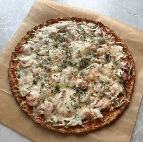 Zucchini-based pizza is an amazing blend of tradition and a creative approach to a beloved dish. Instead of the usual dough, a tender crust made from zucchini is used, making the pizza light and airy with subtle vegetable notes. The history of such alternative bases is linked to the search for healthier and diet-friendly versions of classic dishes. The taste of the pizza is delightful: the juiciness of vegetables, the spiciness of sausages, and the richness of melted cheese create a harmony that delights from the first bite. It’s perfect for those wanting to try something new while keeping familiar flavor accents. This pizza can be served as a standalone dish or as part of a light lunch, complemented with greens and fresh vegetables for added freshness.
