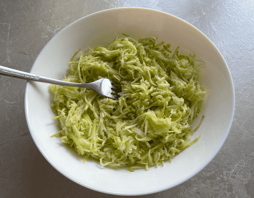 Peel the zucchini and grate it on a fine grater.