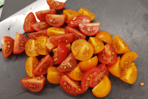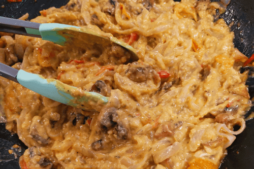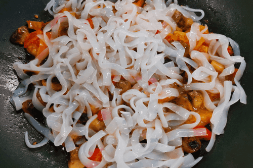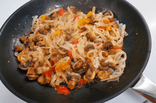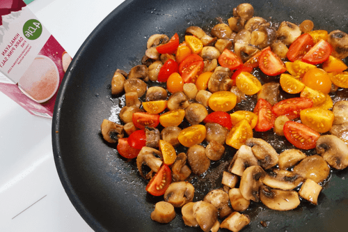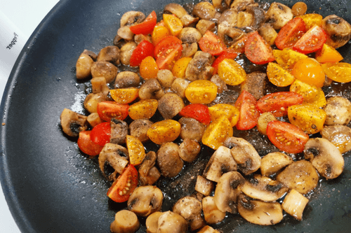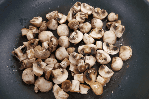 After 3-4 minutes, add them to the mushrooms, season with salt, and mix.