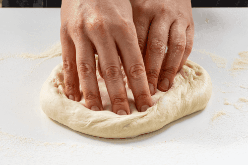 Shape the dough into a ball and place it in a bowl greased with olive oil. Cover with plastic wrap or a damp towel and leave in a warm place for 1.5–2 hours.