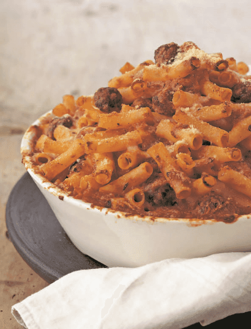 Ziti is a type of pasta traditional for the southern regions of Italy, which is a wide and fairly long tube (25 cm). Baked ziti is a typical Italian-American food, and the phrase " ziti box ", used in "The Sopranos" to denote a thousand dollars, quickly became popular. Recipe from the book "The Sopranos Family Cookbook" by Allen Rucker and Michelle Scicolone.