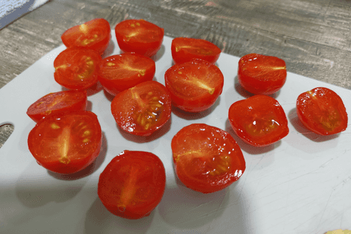 Cut the tomatoes in half.