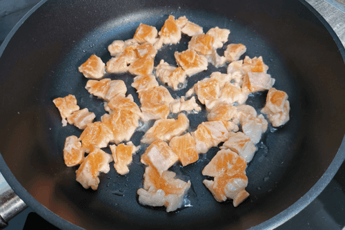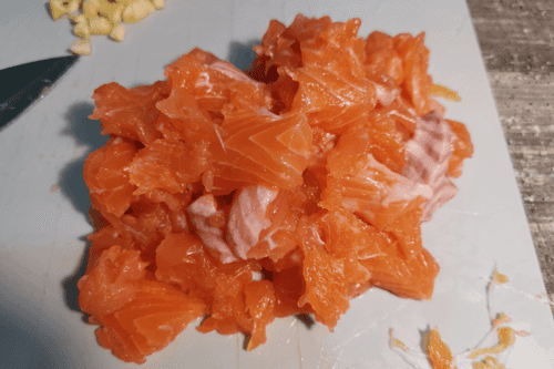 Cut the trout into cubes.