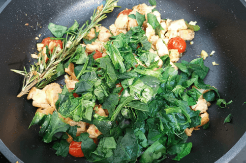 Add a sprig of rosemary and sauté for another 2 minutes.