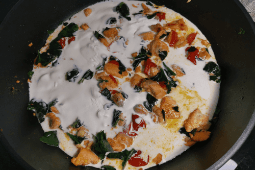 Pour in the cream.