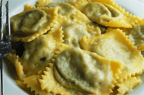 Ravioli with spinach and creamy parmesan