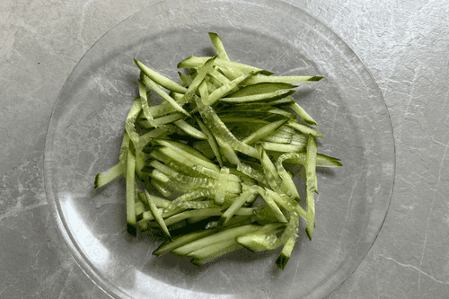 Cut the cucumber into sticks.