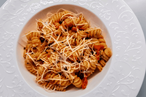 Паста с рикоттой и томатами – это ода итальянской кулинарии, сочетающая нежность сливочной рикотты с пикантностью томатного соуса. Фузилли, впитывая яркий вкус помидоров и соуса чили, становится ароматной основой, а рукола добавляет легкую горчинку и свежесть. Это блюдо родилось из любви итальянцев к простым, но насыщенным вкусам, где рикотта играет главную роль, придавая пасте бархатистую текстуру. Оно идеально подходит как для повседневного обеда, так и для уютного ужина с бокалом красного вина. Посыпанный тертым твердым сыром, этот кулинарный шедевр превращается в гармонию вкусов, где мягкость и насыщенность соединяются в каждом кусочке. Подавайте горячим, наслаждаясь традициями средиземноморской кухни.