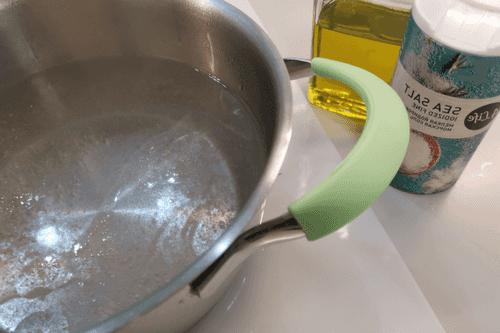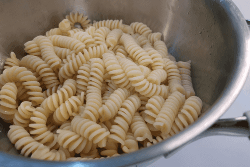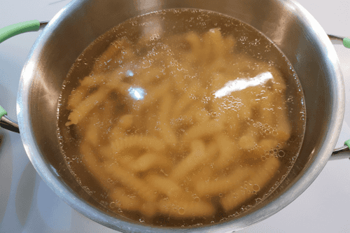 Bring to a boil and add fusilli. Cook without boiling for the time indicated on the package.