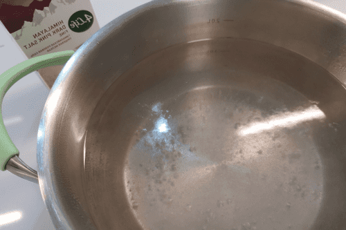 Pour water into the pot, place it on high heat, and add salt.