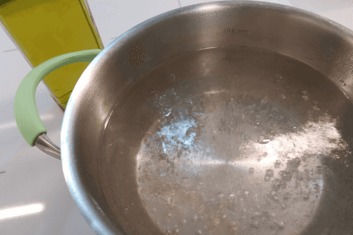 Add 2 drops of olive oil to the water.