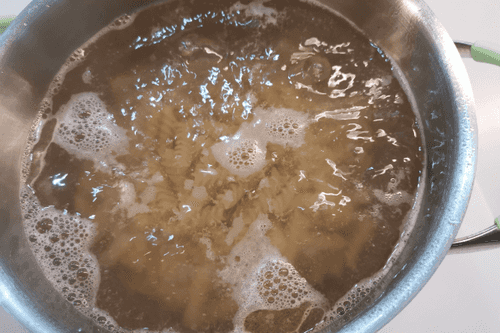 As soon as the pasta is ready, drain the water immediately.