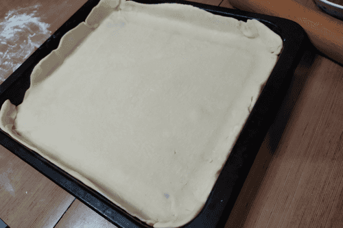 Place the rolled dough on a buttered baking sheet, leaving low edges.