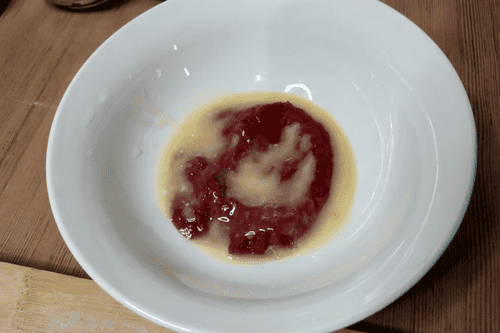 Add 15 grams of melted butter to the tomato paste for the sauce.