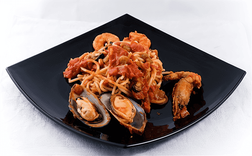 Spaghetti marinara is one of the most famous dishes of Italian cuisine, rooted in the traditions of coastal regions where seafood is combined with fresh tomatoes and aromatic herbs. Its rich flavor is a harmony of sweet and sour tomato sauce, the soft texture of seafood, and a hint of garlic and wine. The dish has remarkable versatility: it suits both everyday dinners and special occasions, adding a Mediterranean charm to the meal. Spaghetti marinara is served hot, infused with the rich aroma of the sea and fresh greens, creating a festive taste experience with every bite.