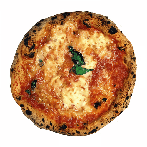 Margherita pizza is the embodiment of simplicity and perfection in Italian cuisine. Its history dates back to 1889 when Neapolitan pizzaiolo Raffaele Esposito created the dish in honor of Queen Margherita of Savoy, using the colors of the Italian flag: red tomatoes, white mozzarella, and green basil. The taste of this pizza is harmonious – tender dough with a crispy crust, rich basil aroma, creamy softness of mozzarella, and a slight acidity from the tomatoes. It is served hot, lightly drizzled with olive oil, and pairs perfectly with a glass of wine or refreshing lemonade. Margherita is not just a pizza; it is a true cultural heritage embodying Italians' passion for quality ingredients and exquisite simplicity.