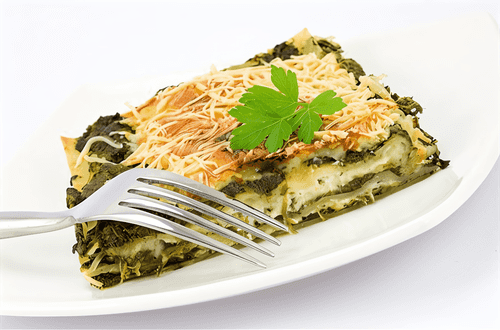 Spinach and cheese lasagna with pine nuts is an elegant dish of Italian cuisine that combines the tenderness of creamy sauce, the rich flavor of spinach, and the aromatic richness of three types of cheese. This recipe can be considered a modern interpretation of traditional lasagna, where meat gives way to the freshness of greens and the creamy texture of ricotta. Pine nuts add a savory touch, while nutmeg highlights the depth of flavors. The baked dish acquires an appetizing golden crust and a melting structure. It is perfect for a cozy family dinner or a festive feast, providing delight in every bite.
