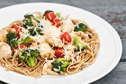 Spaghetti with red wine and broccoli