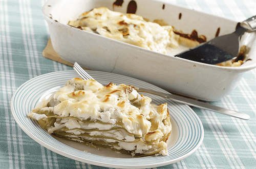 In a bowl, mix ricotta, eggs, parsley, and parmesan. Spread it evenly over the pasta in the dish. Then layer the remaining pasta and sprinkle with mozzarella.