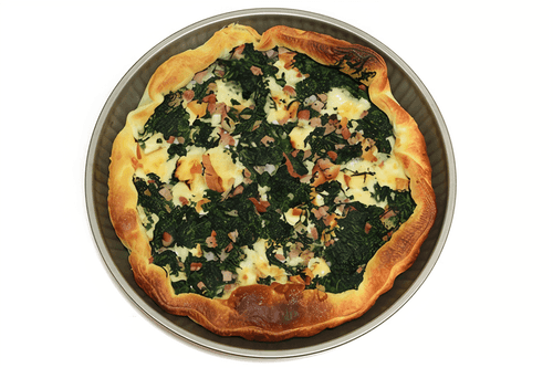Spinach pizza is a delicate and flavorful dish of Italian cuisine. This recipe combines the juiciness of spinach with the creamy texture of melted cheese and the spiciness of cooked sausage. In Italy, greens are often used in pizza, adding freshness and lightness. Spinach is sautéed with eggs and breadcrumbs, creating an airy filling that contrasts with the crispy crust of yeast dough. The uniqueness of this pizza lies in the harmonious balance of flavors—butter adds richness while spices complete the composition. It is perfect for dinner or a cozy lunch with a glass of white wine.