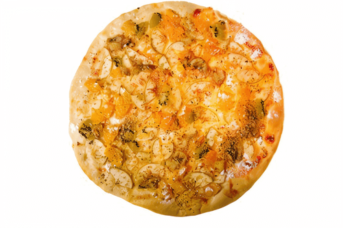 Pizza with smoked fish and sour apples is an unusual combination of classic Italian tradition and bold flavor solutions. The roots of this dish trace back to gastronomic experiments where salty fish and sweet-sour fruits create a surprising balance of flavors. The tender dough with a light crispy crust serves as the perfect base for the aromatic filling. Smoked fish adds a piquant richness, onions contribute a soft sweetness, while apples refresh and slightly offset the fattiness of the other ingredients. The composition is completed by spices and melted cheese that unites all flavor accents into a harmonious dish. This pizza is perfect for an original dinner or a gastronomic discovery for lovers of unconventional combinations.