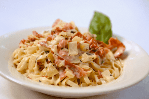Spaghetti carbonara with parma ham