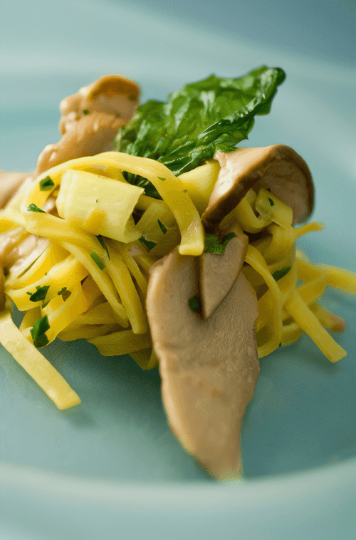 Tagliatelle with mushrooms, lemon zest, parmesan and argan oil
