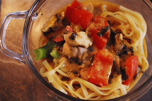Thai pasta with chicken fillet is a vibrant combination of aromas and flavors embodying the richness of Thai cuisine. This recipe originates from traditional Thai curry dishes where coconut milk softens the spiciness of the curry paste, while ginger and lime add freshness. Tender chicken fillet absorbs a rich sauce filled with spices and exotic notes, while sweet pepper and basil complete the composition by adding contrast and depth. Linguine cooked to al dente perfectly complements the creamy texture of the sauce, while broccoli adds crunch and health benefits. This dish not only delights the palate but also energizes, creating a sense of journey through Thai streets filled with spicy aromas and warmth of Eastern hospitality.