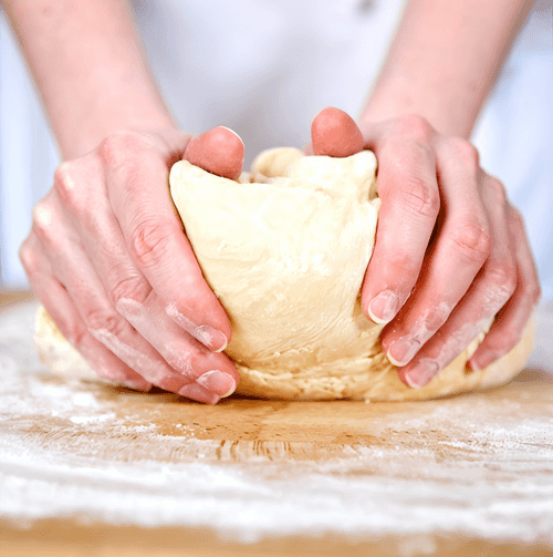 Transfer the dough from the bowl to a dry, floured surface, and continue kneading, adding flour if needed, until the dough is soft and elastic (about 10 minutes).