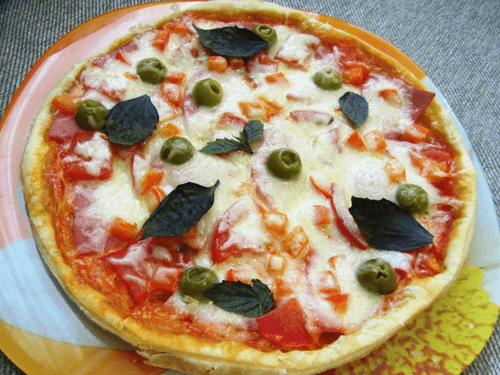Italian pizza with mozzarella cheese is the embodiment of traditional Italian gastronomy that originated in Naples. Its thin, crispy dough made from wheat flour and olive oil becomes airy thanks to yeast. The filling of fresh tomatoes, aromatic basil, and tender mozzarella cheese creates a harmony of flavors complemented by tangy parmesan and a drizzle of olive oil. During baking, the cheese melts to form an appetizing golden crust. This pizza is perfect for a cozy family dinner or friendly gatherings, awakening a love for Italian cuisine.