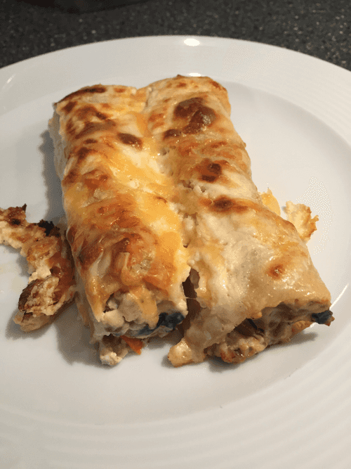 Sauté the mushrooms in butter with onion, garlic, dill, and green onion. Fill the cannelloni with the resulting filling.