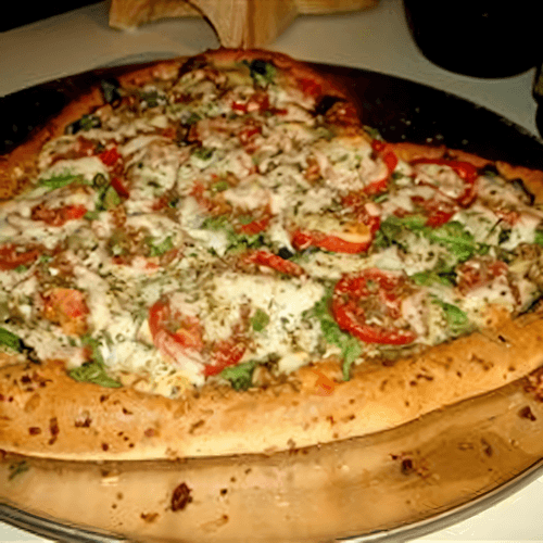 Heart-shaped pizza is not just a dish but a true symbol of love for Italian cuisine. Its origin traces back to traditional Neapolitan pizza, but the heart shape adds a special romantic touch. The crispy dough with aromatic rosemary creates the perfect base, while the rich tomato sauce enhances the flavor. The combination of tender mozzarella, juicy tomatoes, zucchini, and spicy pepperoni offers a harmonious balance of freshness and spice. Olives add a slight saltiness that highlights the depth of flavor. This pizza not only delights the taste buds but also makes the dining moment special—whether it's a dinner for two or a festive feast. Baked to a golden hue, it radiates warmth and coziness, turning a simple dish into culinary art.