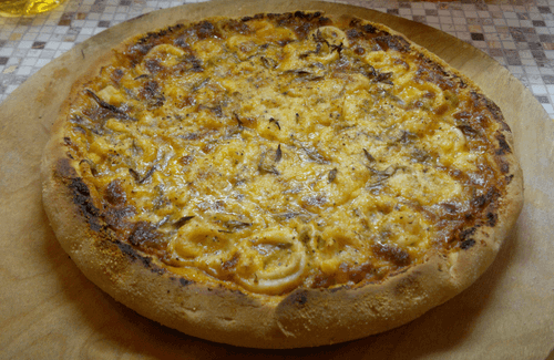 This pizza is a refined combination of seafood on delicate, airy dough made from two types of flour for the perfect texture. Calamari and shrimp, carefully processed and complemented by the aroma of fresh herbs, give the dish special juiciness and softness. Tomatoes seasoned with spices create a rich sauce that enhances the flavor of the seafood, while mozzarella and parmesan cheese add depth and creamy stretchiness. Olives, green onions, and a splash of lemon juice complete this harmony of flavors. Such a dish will be the centerpiece of dinner, especially when paired with good white wine. The origins of this recipe trace back to the traditions of Italian coastal towns where fresh seafood always takes center stage in cuisine. Pizza with calamari and shrimp is a gastronomic journey into warm Mediterranean evenings.