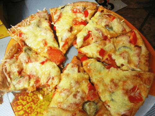When the pizza is ready, take it out and sprinkle with cheese, put it back in the oven until the cheese is melted.