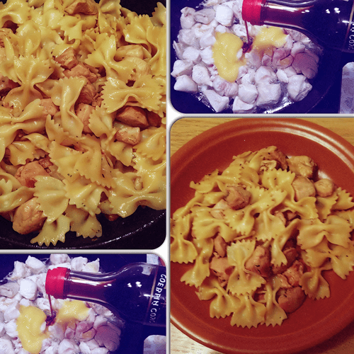Farfalle with chicken and honey