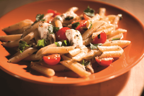 Plus, actually, mozzarella is the main ingredient here, alongside tomatoes. It's better to choose penne pasta.