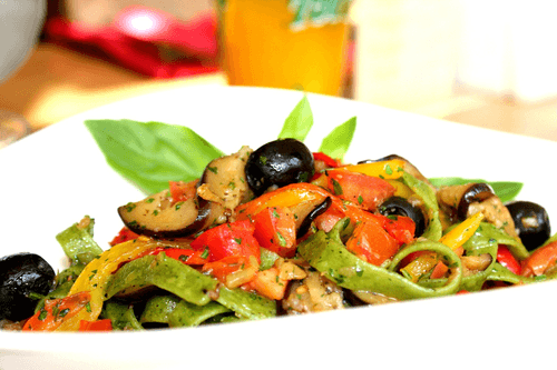 Pasta 'Melanzana' is a fragrant dish of Italian cuisine that combines tender eggplants, sweet peppers, and juicy tomatoes. The name 'Melanzana' translates to 'eggplant,' highlighting the main role of this vegetable. In Italy, eggplants are loved for their ability to absorb flavors and enrich dishes. In this recipe, the vegetables are sautéed in aromatic garlic oil and then combined with pasta, creating a harmonious blend of textures. Salt and black pepper add balance, while olives and fresh parsley provide a Mediterranean touch. This dish is perfect for a light dinner or festive table, delighting with its simplicity and rich flavor. Vegetarian pasta 'Melanzana' is a choice for those who appreciate the freshness of vegetables and the richness of Italian gastronomy.